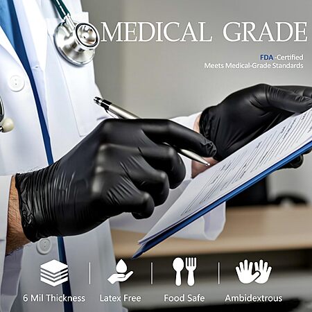 100-ct 6 Mil Nitrile Disposable Gloves (Heavy Duty, Black, Medical Grade Food Safe) $10.39