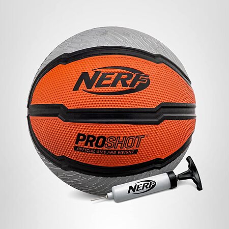 $10*:Nerf Indoor + Outdoor Basketball - Proshot Official Size 29.5" Basketball + Air Inflation Pump - Extra Grip for Gym + Driveway Hoops - Regulation B7 Ball - Black/Orange
