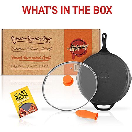 12" NutriChef Cast Iron Skillet w/Lid $30.39 + Free Shipping w/ Prime or on $35+
