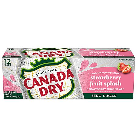 12-Pack 12-Oz Canada Dry Fruit Splash Strawberry Ginger Ale Zero Sugar Soda $5 + Free Shipping w/ Prime or on $35+