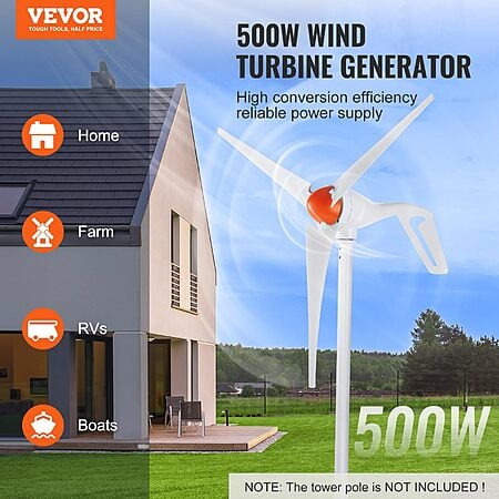 Harness the Power of the Wind!VEVOR Wind Turbine Generator Kit (12V-500W)Unlock a sustainable energy source with this robust wind turbine generator kit. Perfect for supplementing your power needs and reducing your carbon footprint.