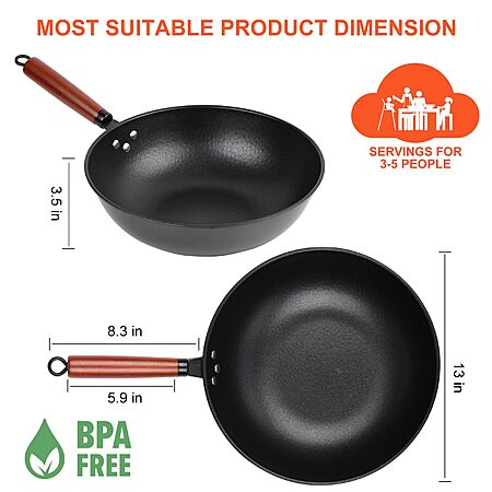 13" Bretor Flat Bottom Pre-Seasoned Carbon Steel Nonstick Wok w/ Glass Lid, Wok Spatula and Cleaning Whisk $19.99 + Free Shipping w/ Prime or on $35+