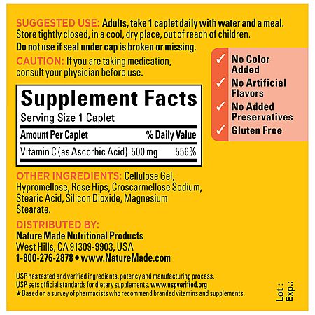 - High Potency: Each serving provides 500mg of Vitamin C.