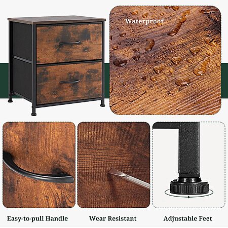 $15.50*:Small 2-Drawer Nightstand, Fabric Dresser End Table with Wooden Top for Bedroom/Closet/Entryway, 11.8" D × 18" W × 20", Brown