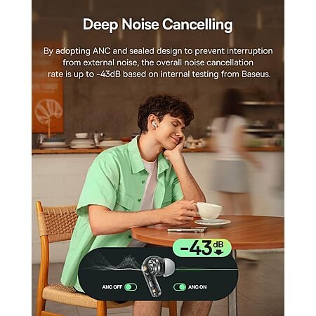 $16.99* | Baseus Bass BP1 NC Hybrid Active Noise Cancelling Wireless Earbuds (various) at Amazon