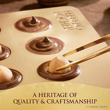 • Hazelnut Delight: A crunchy hazelnut center is enveloped in a luscious, creamy chocolate hazelnut filling, coated in milk chocolate, crispy wafers, and delicate roasted hazelnut pieces.