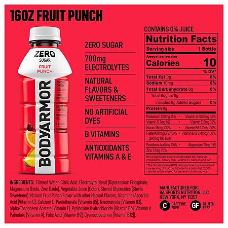 Quench Your Thirst with Zero Guilt!Dive into refreshing hydration with BODY ARMOR Zero Sugar Electrolyte Drinks. Perfect for workouts, busy days, or anytime you need a boost!Available Flavors: