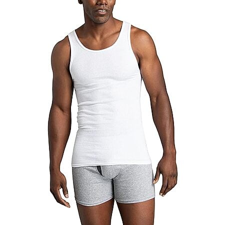 $18.99* | 14-Pack Fruit of the Loom Men's Moisture Wicking Tank A-Shirt (White) at Amazon
