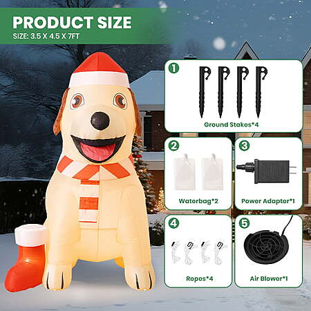 $19.99*:GVDV 7 FT Christmas Inflatable Lab Dog with Bright LED, Blow Up Decoration for Outdoor & Indoor Holiday Party, Yard, Lawn, Home