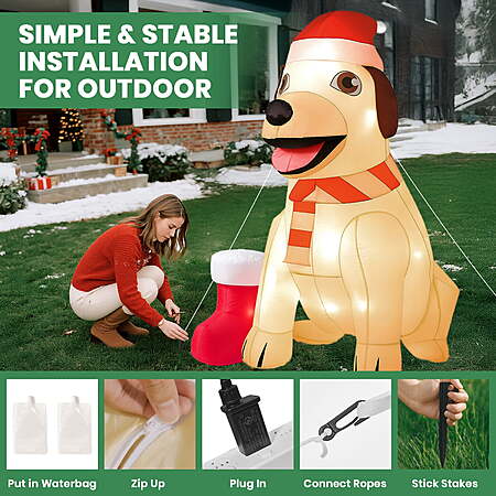 Festive Fun with an Inflatable Lab! Bring holiday cheer to your home with this adorable inflatable lab dog. Perfect for indoor or outdoor use, it’s sure to delight guests and neighbors alike! Key Features: