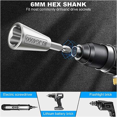 • Universal Fit: Compatible with any standard 6mm hex shank drill.