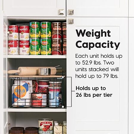 • Space Saving & Sturdy: Folds flat for easy storage when not in use. Each tier holds up to 26 lb, or stack two units for a total capacity of 79 lb.