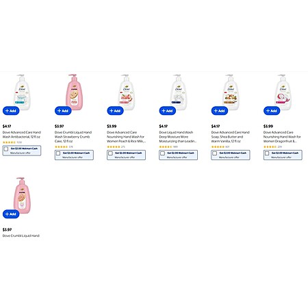 $2 WM Cash + Dove Crumbl Liquid Hand Wash Strawberry Crumb Cake, 12 fl oz + more $3.97