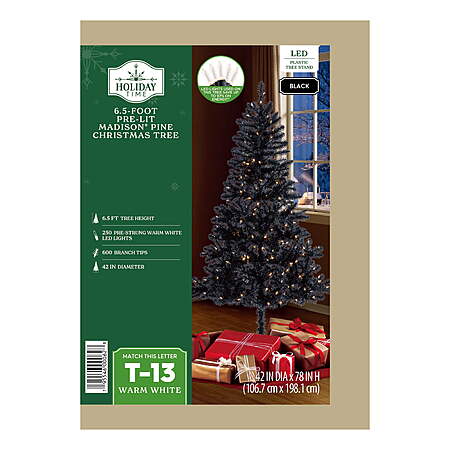 $24.44: 6.5' Pre-Lit Madison Pine Black Artificial Christmas Tree with Warm White LED Lights, by Holiday Time $24.44