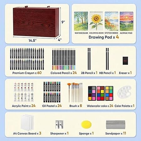 $24.74* | 194-Piece Cool Bank Deluxe Art Set (Crayons, Oil Pastels, Acrylic Paints & More) at Amazon