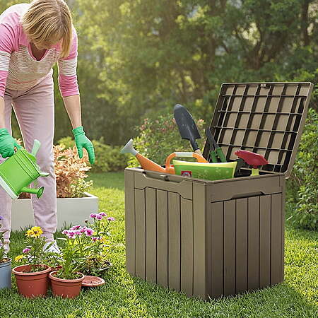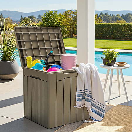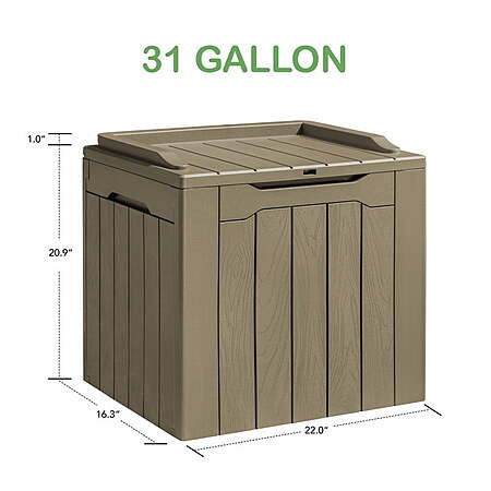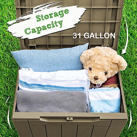 • Generous Capacity: 31 gallons of storage space to neatly organize garden tools, seat cushions, or pool accessories.