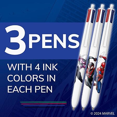 3-Count BIC 4-Color Retractable Ballpoint Pen with Marvel's Spider-Man Theme (Versatile Medium Point, Assorted Ink) $3.45 ($1.15/ea) w/ S&S + Free Shipping w/ Prime or on $35+