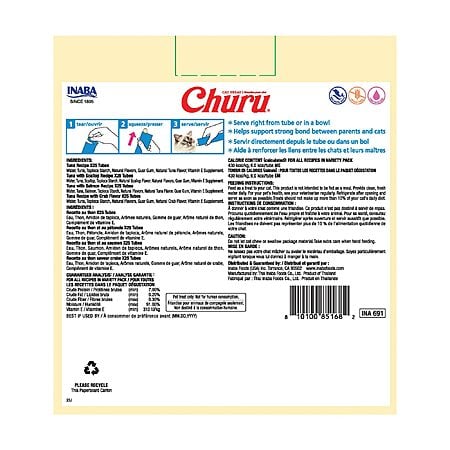 $35.62: 100-Count 0.5oz. INABA Churu Creamy Purée Cat Treat (Tuna Variety) w/ Subscribe & Save at Amazon