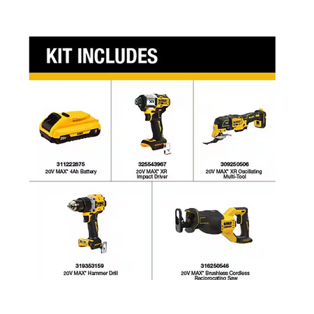 Unleash Your Potential with the DEWALT 20V MAX Cordless 4-Tool Combo Kit! Dominate any job with this powerful and versatile tool kit. Key Features: