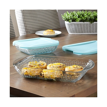 Anchor Hocking Basketweave Embossed Bakeware SetUnleash Your Inner BakerElevate your baking experience with this beautiful and functional bakeware set. The classic basketweave design adds a touch of elegance to your kitchen and table.What’s Included: