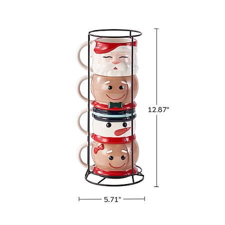 4-Piece Holiday Time Stacking Ceramic Mugs w/ Stand (3 Styles) $6.23 + Free S&H w/ Walmart+ or on $35+
