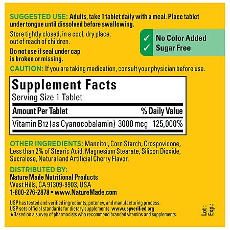 40-Count Nature Made Vitamin B12 3000 mcg Sublingual Fast Dissolve Tablets $4.62 w/ S&S + Free Shipping w/ Prime or on $35+