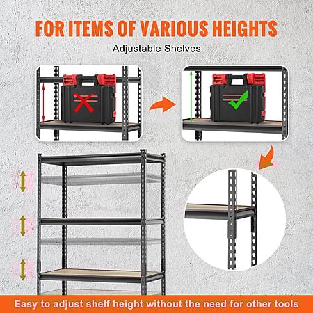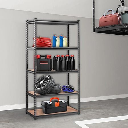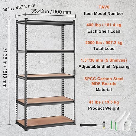 $47.59*:VEVOR 5-Tier Adjustable Storage Shelving Unit, 2000 lbs, Metal, Black, 36" L x 18" W x 72" H at Amazon