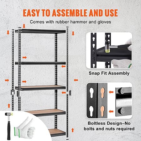- Setup. A Piece of Cake: It is a breeze to set up this metal shelf. With our press-to-assemble design, your only assembly buddies are a rubber hammer and gloves – included, of course.