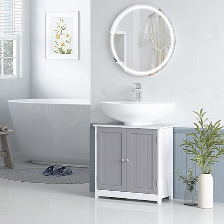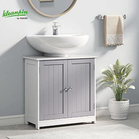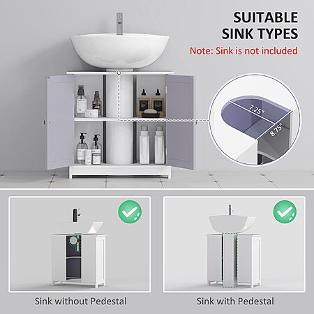 Maximize Your Bathroom Space with the kleankin Under-Sink Cabinet!Looking to declutter your bathroom and create a more organized space? This freestanding cabinet is the perfect solution for utilizing that often-overlooked area under your sink.Key Features: