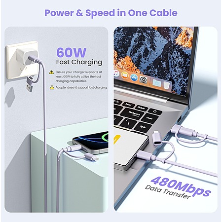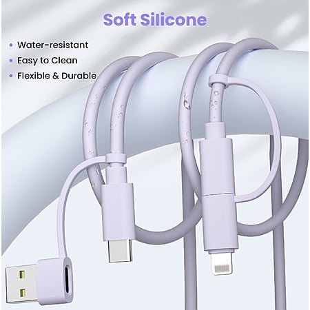 6.6' Elebase 4-in-1 USB-C Charging Cable w/ USB A/Lightning Adapter (Purple) + Select BOGO Offer $6.50 + Free Shipping w/ Prime