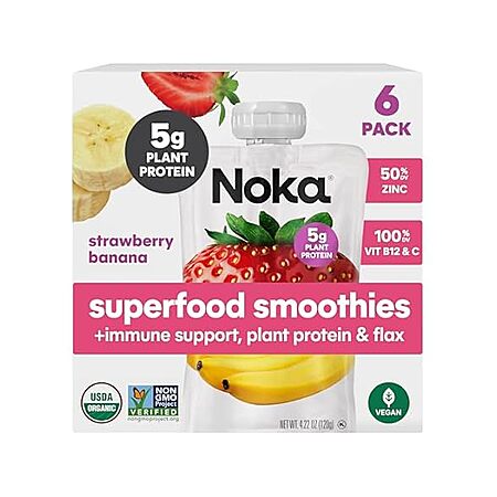 6-Pack 4.22-Oz Noka Organic Superfood Smoothie Pouches (Super Berry, Strawberry Banana) $8.99 + Free Shipping w/ Prime