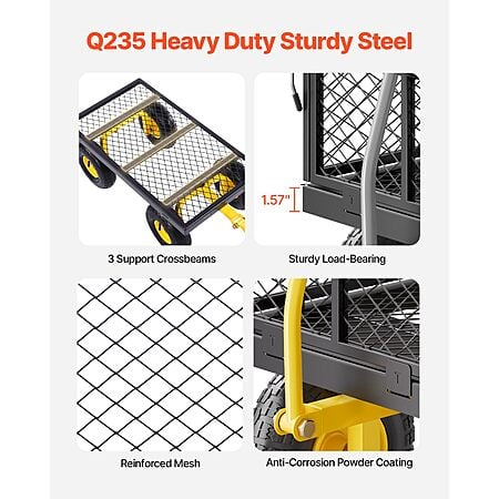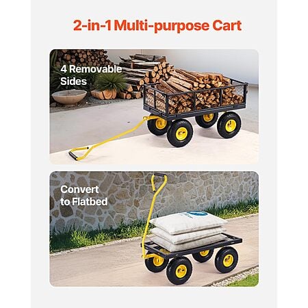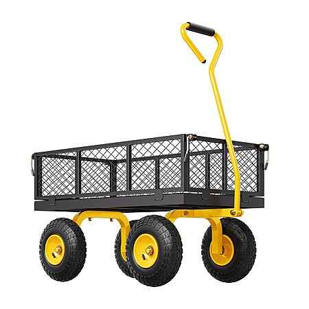 $61.9*:VEVOR 500 lbs Steel Garden Cart – Heavy Duty Wagon with 10" All-Terrain Tires, Removable Mesh Sides, 180° Rotating Handle, Pullable on Wheels at Amazon.com