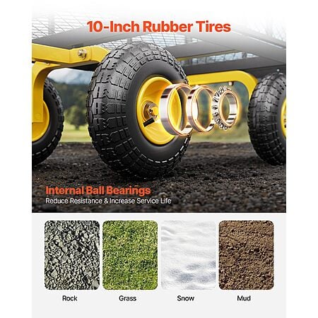 - Smooth Rolling: Equipped with 10-inch rubber tires and metal hubs for easy maneuverability across grass, mud, rocks, and snow.