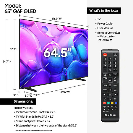 65” Samsung Q6F Series QLED 4K UHD SamsungVision AI Smart Tizen TV (2025) $449.99 + Free Shipping 65” Samsung Q6F Series QLED 4K UHD SamsungVision AI Smart Tizen TV (2025) $449.99 + Free Shipping Best Buy February 21st, 2026 1:57pm Samsung Q6F Series QLED 4K UHD Smart Tizen TV (2025) $600.00 $450 Buy from Best Buy