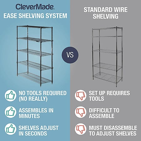 Unleash the Power of Organization! CleverMade 5-Tier EASE Storage Shelving Unit Maximize your space with this heavy-duty, easy-to-assemble shelving unit. About This Item