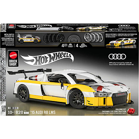 Unleash Your Inner Builder!Experience the thrill of creating your very own iconic sports car with the 820-Piece Mattel Brick Shop 1:16 scale ’15 Audi R8 LMS Building Set.Bring the Racetrack Home: