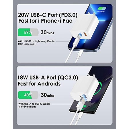 Supercharge Your Devices with Blazing-Fast Charging!Experience the Power of PD 20W and QC 3.0This 4-pack USB C Charger Block is your ultimate solution for fast and efficient charging. Equipped with both PD 20W USB-C and QC 3.0 USB-A ports, it’s designed to power up your iPhones, iPads, Galaxy devices, Google phones, and more at incredible speeds.Universal CompatibilityCharge virtually any USB-powered device. From the latest iPhone 17 to older models like the iPhone 8, and a wide range of Android devices, this adapter has you covered.Key Features: