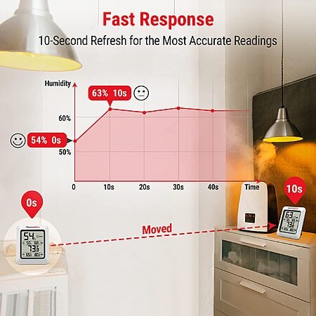 • Accurate and Fast Refresh: Get precise readings with ±2~3%RH and ±1°F accuracy. Data updates every 10 seconds, perfect for dynamic environments.