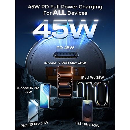 • USB-C 45W PD & QC 3.0 Fast Charging