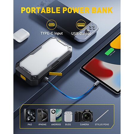 - Versatile Power Bank: Includes multiple output ports like a 5 V/2.4 A USB-A and a Type-C input for charging various devices.