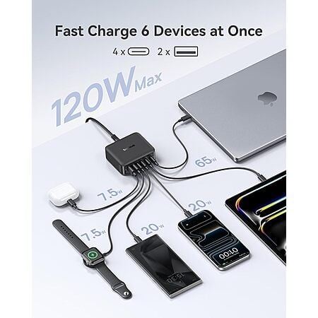 Baseus 120W GaN 6-Port Desktop Charging Station (4x USB-C & 2x USB-A) $29.99 + Free Shipping Baseus 120W GaN 6-Port Desktop Charging Station (4x USB-C & 2x USB-A) $29.99 + Free Shipping Amazon October 6th, 2025 12:03am Looks like there is no product description available. $50.00 $30 Buy from Amazon