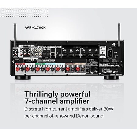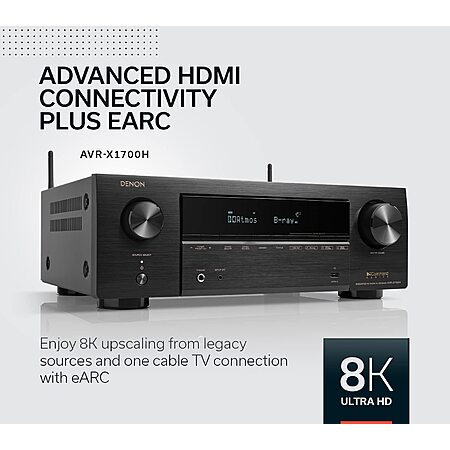 Denon AVR-X1700H 7.2 Receiver 8K HDMI Video w/eARC, Dolby Atmos, DTS:X, Built-in HEOS, Amazon Alexa $493