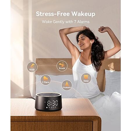 Drift into Dreamland with Dreamegg!Imagine waking up refreshed and ready to take on the day, all thanks to the Dreamegg Sound Machine Alarm Clock.Key Features:
