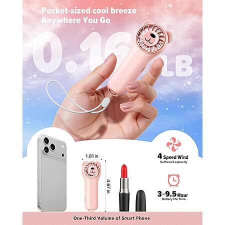 Funaudio Rechargeable Handheld Fan (Pink) $6.99 + Free Shipping w/ Prime or on $35+