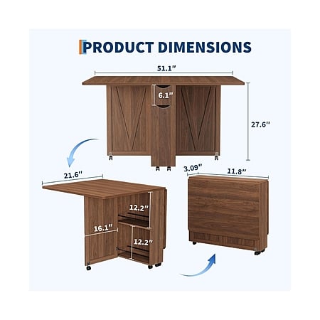 GAOMON Folding Dining Table w/ Drawer, Shelves & Wheels (36" x 24" x 6") $154.06 + Free Shipping