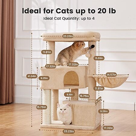 Gardner Pet 41″ Cat Tree for Medium Large Cats, Heavy Duty Cat Trees Tower with 2.8in Posts & Washable Top Perches