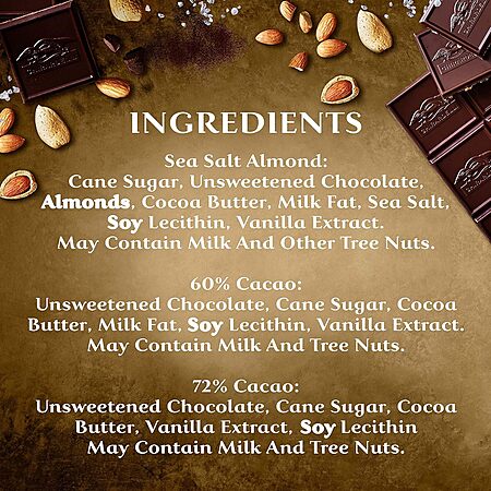 Ghirardelli Intense Dark Net Wt 19.14 Oz, Dark Chocolate 60% Cacao, 72% Cacao, Dark Chocolate Sea Salt Soiree with Almonds~$20.33 @ Amazon