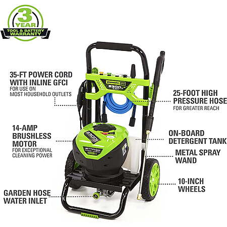 Greenworks 2300-PSI TruBrushless (2.3 GPM) Electric Pressure Washer w/ 25’ Hose & Quick Connect Wand $188.49 + Free Shipping