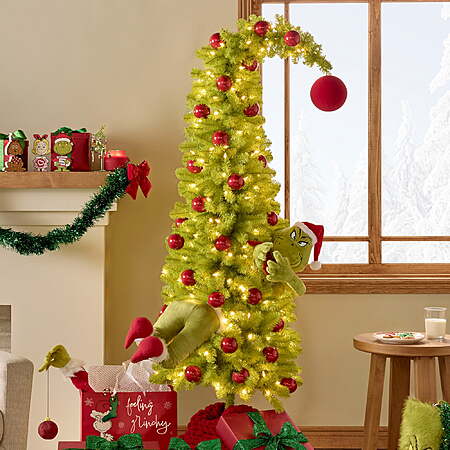 Grinch Christmas Tree – 6' Pre-Lit Lawndale Spruce Green Artificial Christmas Tree with Warm White LED Lights $56 @ Walmart