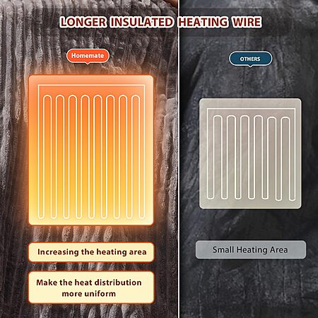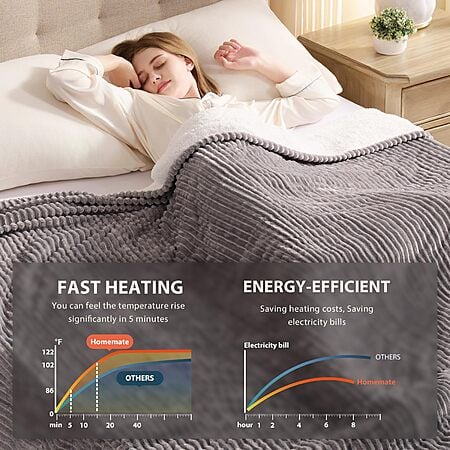 Experience Unparalleled Comfort with the Homemate Heated Blanket Indulge in the luxurious warmth and soothing comfort of the Homemate Electric Heated Blanket. Designed for ultimate relaxation and crafted with premium materials, this blanket is your perfect companion for chilly evenings and restful nights. Key Features: